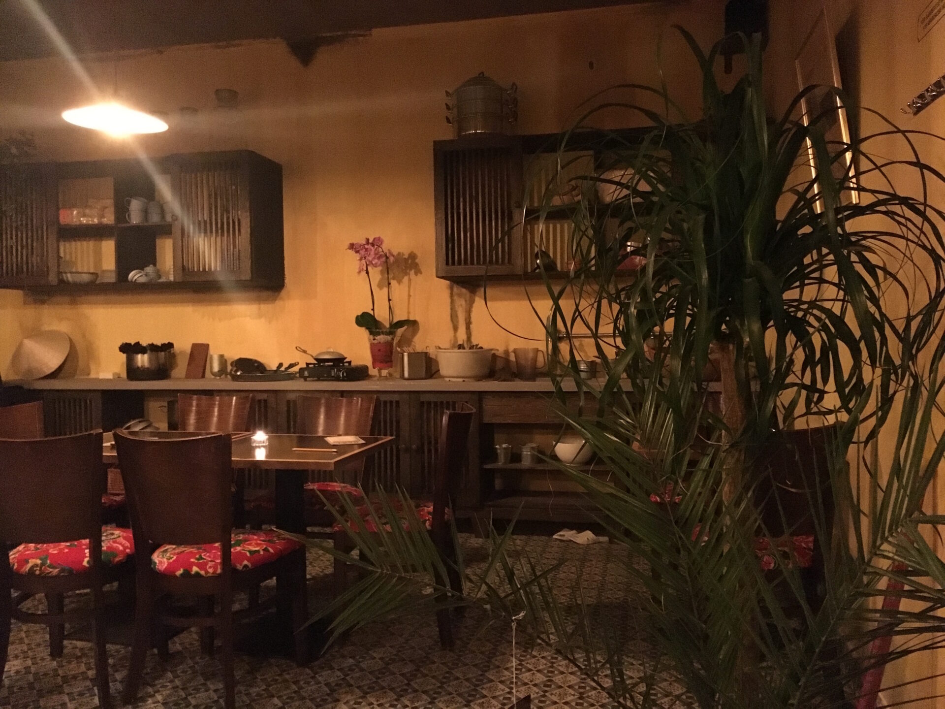 Wer das 1990 betritt, wird vermutlich wie ich auch gleich begeistert sein, denn das Restaurant ist wunderschön aufgemacht. „Warum steht da eigentlich eine Küchenzeile?“ frage ich den Betreiber Trung, der zuvor schon das Cat Tuong auf der Kastanienallee in Prenzlauer Berg hochgezogen hat, ein weiteres rein veganes vietnamesisches Restaurant. Die Erklärung ist: Das 1990 hat zum Konzept, die Atmosphäre einer typischen vietnamesischen Wohnung 1990 wiederzugeben. Ein Teil des Restaurants stellt die Küche dar, ein anderer Teil das Wohnzimmer, ein weiterer die Terrasse. Man sitzt hier wirklich total gemütlich und kann sich wohl fühlen – wie zuhause eben. Ein ungewöhnliches und schönes Konzept. Dazu tragen auch der superfreundliche Service bei. Aber was bietet das 1990 kulinarisch?