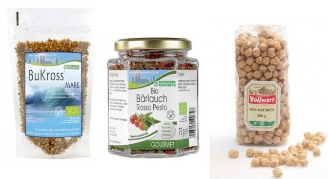 Die von mir getesteten Sojawürfel sind toll für ein veganes Gulasch. Außerdem habe ich ein Bärlauch Rosso Pesto ausprobiert. Das Besondere: Das ganze kommt im Glas als Gewürzmischung, die dann noch mit Wasser angerührt wird. So ist das Glas ganz schön ergiebig. Auch das Trockenpesto kommt in Bio-Qualität. War sehr lecker!