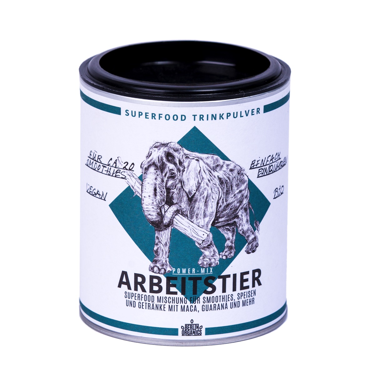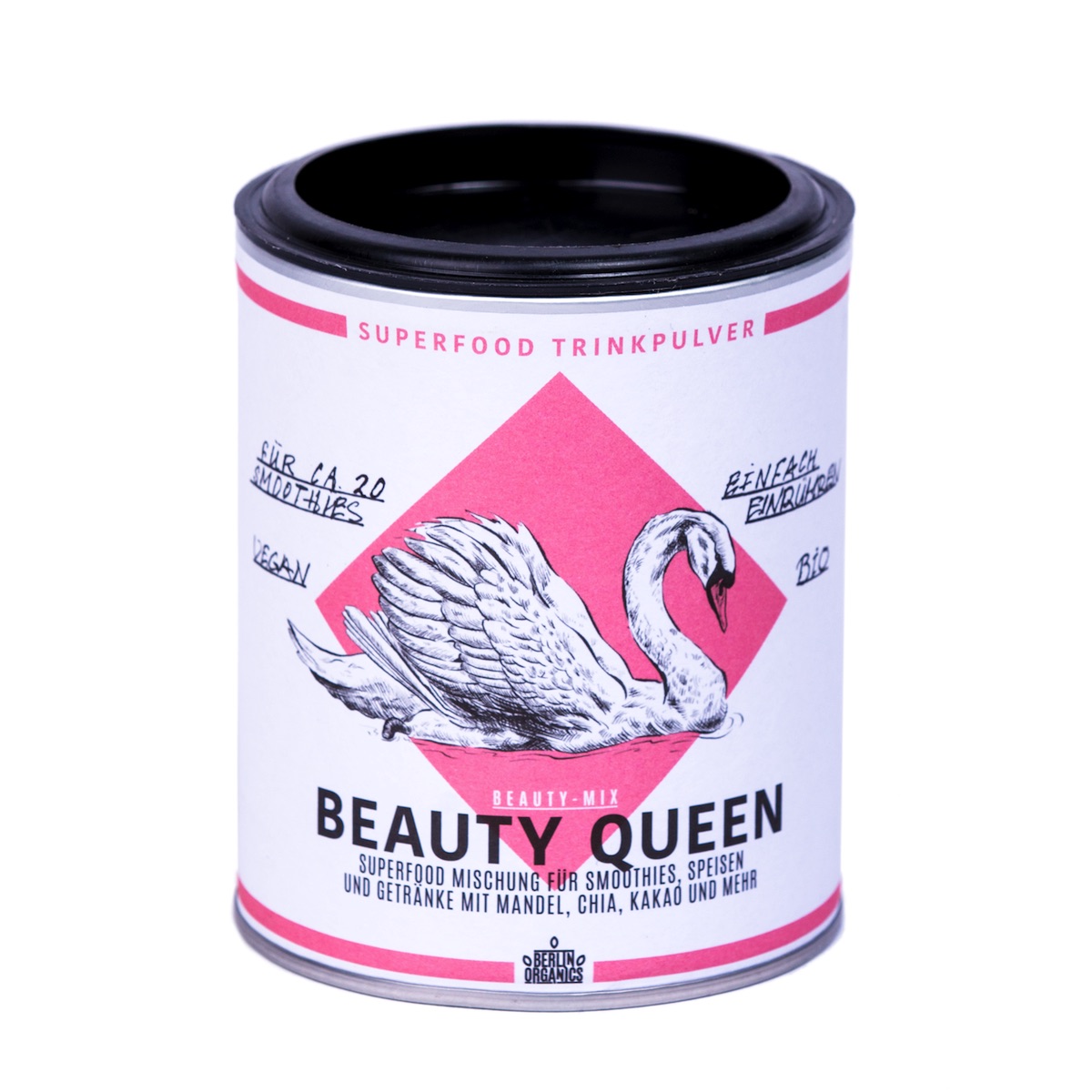 Auffällig ist bei den Produkten von Berlin Organics, dass sie in Hinsicht auf die Namensgebung und Verpackungsdesign ausgefallen sind. Die Produkte heißen Ruhepol, Kraftpaket, Arbeitstier, Saubermann, Nachtschwärmer, Beauty Queen und Schutzschild. Passend zum Namen gibt es ein schön gezeichnetes Tier auf der Packung, welches symbolisch für den Namen stehen soll. Die Beauty Queen zum Beispiel ist ein Schwan, und in der schönen Verpackung findest du eine Mischung aus Chia, Kokoszucker, Kakao, Mandeln und Flohsamen. Aus der Mischung kannst du dir einen schnellen Shake anrühren oder sie als Zugabe in etwas „aufwändigeren“ Smoothies mit weiteren frischen Zutaten. Coolerweise bekommt man auf der schönen Homepage von Berlin Organics zu jedem Produkt wertvolle Tipps: Was passt dazu, was weniger? Nicht nur Smoothies, sondern auch Müslis, Porridge oder Backwaren freuen sich über die Extraportion Superfoods. Sprich, man kann eine Menge damit machen.