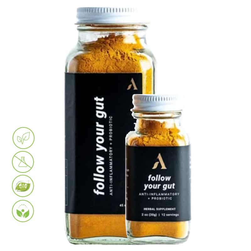 Follow your gut ist ein Nahrungsergänzungsmittel voll mit adaptogenen Superfoods. Es ist wie eine Bären-Umarmung in einer Tasse. Dieses entzündungshemmende Kraftpaket reduziert entzündliche Prozesse in deinem Körper, mindert Angstzustände und Stress, bringt deinen Darm in Schwung und vor allem, bringt dich wieder zum Strahlen. Follow your gut ist ein perfekter Starter-Blend, für all diejenigen, die sich neu im Markt der Superfoods orientieren. Es eignet sich für jedermann und -frau, jeglichen Alters, auch für Kinder. Du hast die Wahl zwischen einer kleinen Packung mit 12 Portionen für 28,90 EUR und einer großen Packung mit 45 Portionen für 79,90 EUR.