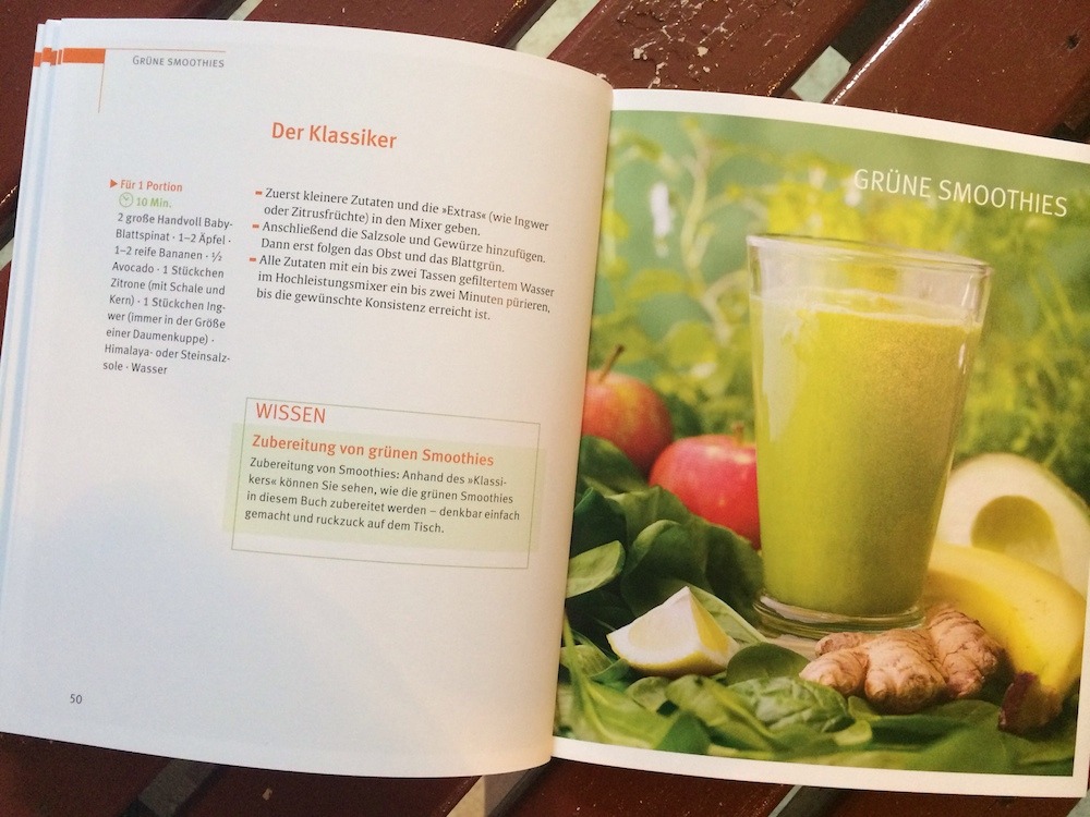 Ein tolles, schön gestaltetes und bebildertes Buch, das richtig Lust auf Grüne Smoothies und Rohkost macht, und alle benötigten Infos kompakt zusammenfasst. Erschienen ist es im Trias Verlag, hat 96 Seiten und kostet 12,99 Euro.