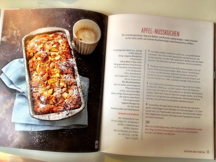 Die Aufmachung und Gestaltung ist höchst professionell und superschön, die Fotos wie auch in La Veganista sensationell und appetitmachend. Man blättert durch, und weiß gar nicht was man am liebsten als erstes backen und verspeisen wollen würde. Direkt im Klappcover gibt es die „Vegane Austauschbörse“, ein wenig so wie in unserem Buch „Ab heute vegan“ toll visualisiert. Es folgen weitere Tipps und Tricks für’s vegane Backen sowie Grundrezepte für Rührteig, Süßen Hefeteig und Quicheteig, bevor es in die Rezepte geht. Dort wird unterschieden in 3 Kategorien:
