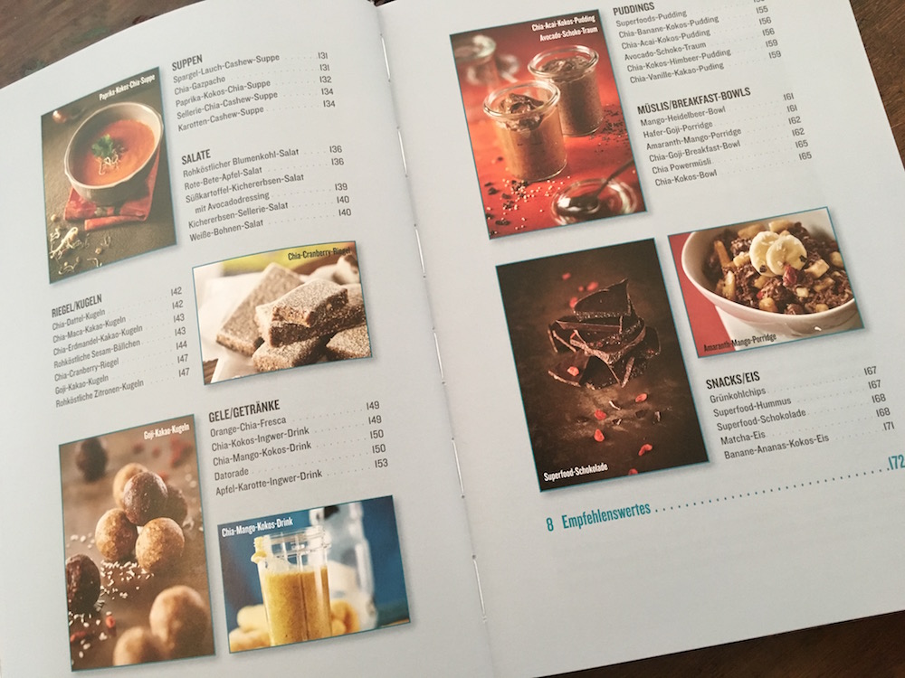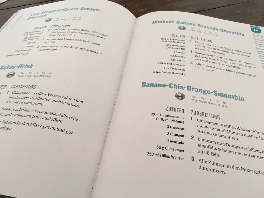 Im Kapitel „Praktisches“ erfährt man dann einiges dazu, wie Ben sich vor, während und nach seinen Sporteinheiten ernährt. Und dann gibt es noch einen Themenschwerpunkt „Superfoods“, in dem Ben detaillierter erklärt, welches Superfood welche Funktionen hat, und wann es am besten eingesetzt werden soll. Es macht schließlich auch keinen Sinn, wild alles durcheinander in den Mixer oder in den Mund zu werfen, nur weil „Superfoods“ draufsteht.