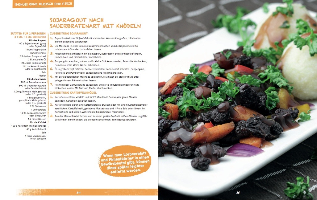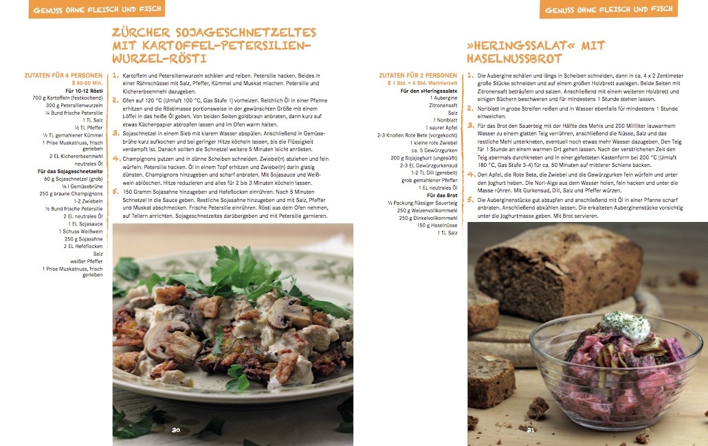 So ist das Buch vor allem für Einsteiger ins vegane Leben interessant, da man zusätzlich zu den Rezepten alle wichtigen Hintergrundinfos bekommt. Aber auch für alle, die schon „Bescheid wissen“ ist das Buch interessant, weil es eine ganze Menge abwechslungsreicher Rezepte bietet. Das Konzept von „So geht vegan!“ sieht vor, dass man als Einsteiger zunächst mal lernt, klassische Fleisch-, Fisch- oder Käserezepte zu veganisieren, bevor man eine kreative vegane Küche ganz ohne Ersatzprodukte kennen lernt – bis hin zu Superfoods und Rohkost. Dazu gibt es eine Reihe von Grundrezepten für z.B. Pflanzenmilch, Seitan oder dunkle Sauce.