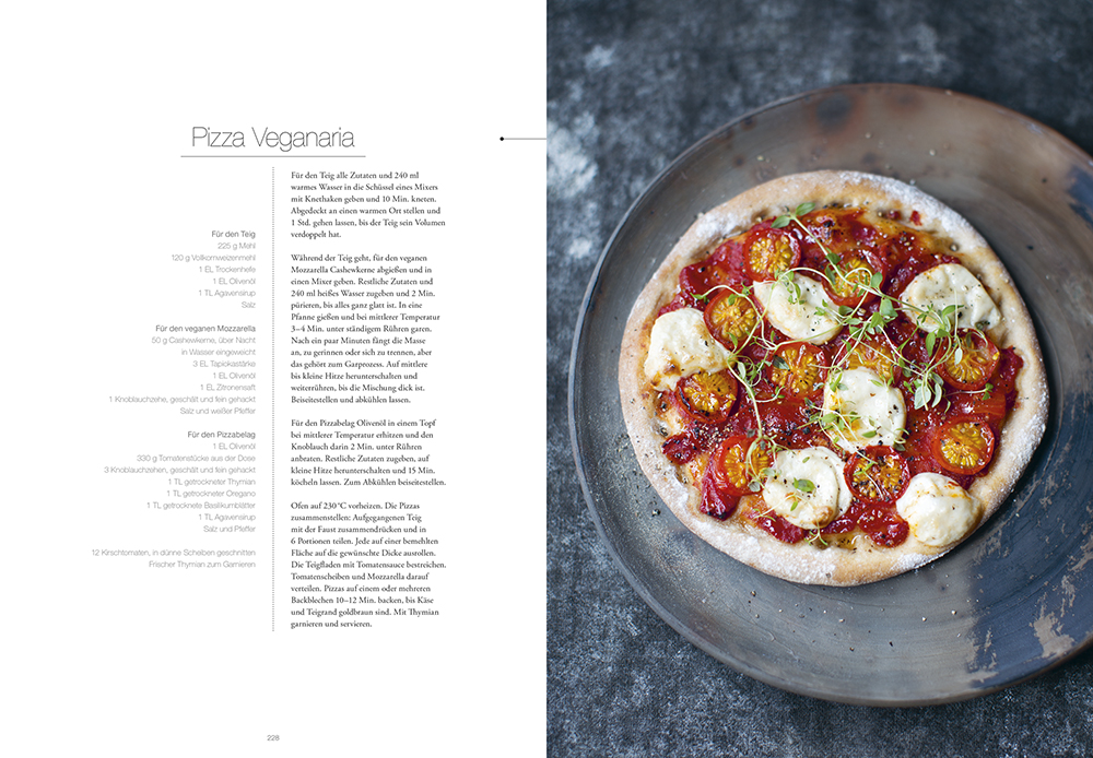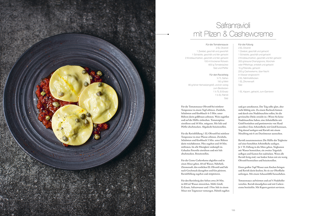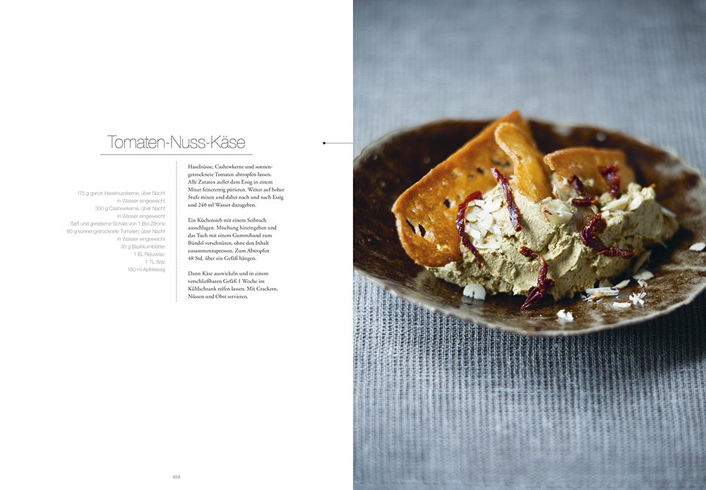 Es wäre müssig, an dieser Stelle Rezeptnamen aufzulisten, viel zu umfangreich ist das Buch. Aber eines wird schnell klar: In „Vegan Cuisine“ gibt es nicht die xten Varianten bekannter Gerichte, und wenn, dann mit einer Extraportion Kreativität. Dafür aber jede Menge Gerichte, die man so noch nicht gelesen, gehört oder gegessen hat. Kapitel wie „Käse & Cracker“ bieten soviel Interessantes, dass man das Buch gar nicht mehr weglegen möchte – und wenn dann nur, um in die Küche zu gehen. Unfassbar, welche Arbeit hier hineingesteckt wurde, das kann man gar nicht genug würdigen! Dazu gibt es viele wunderschöne Bilder vom weltbekannten Food-Fotograf Joerg Lehmann, die unglaublichen Appetit machen. Um mal ein paar Eindrücke zu bekommen:
