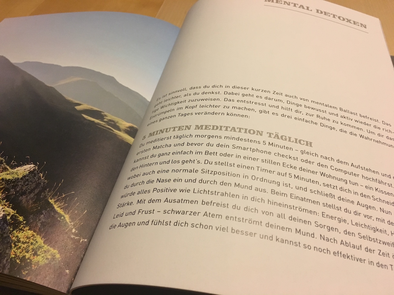 Im Anschluss an die einführenden Worte und „Grundregeln“ wird über die Testgruppe berichtet, die das Konzept im Vorfeld ausprobiert hat – mit durchaus beeindruckenden Ergebnissen. Anschließend gibt es noch ein paar To-Do-Listen für den Start, bevor es Rezepte für 7 Tage gibt, in unterschiedlichen Varianten, so dass man etwas Abwechslung reinbekommt, sollte man die 7 Tage verlängern. Morgens gibt es die Wahl zwischen 2 proteinhaltigen Shakes, mittags und abends dann die Wahl aus je 2 Gerichten, immer mit Kalorienangaben. Anschließend widmet sich Attila dem Thema „Trinken“ noch ein wenig ausführlicher, bevor es in den Fitnessteil geht. Hier bekommt der Leser insgesamt 27 Übungen erklärt, die man kombinieren kann. Abschließend gibt es noch Tipps zur Meditation und kurz knapp die wichtigsten Gründe für eine vegane Ernährung noch einmal zusammengefasst.