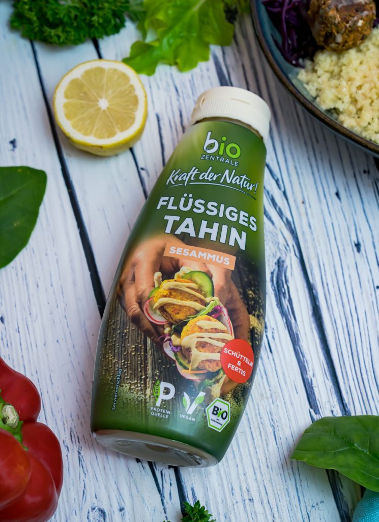 Du solltest unbedingt auch das flüssige Tahin von der Bio-Zentrale probieren. Mit Sesammus lassen sich tolle Dips und Saucen zubereiten. Oft ist Tahin aber fest und muss mit der Gabel erstmal ordentlich „flüssiger“ gerührt werden. Damit ist nun Schluss. Mit diesem flüssigen Tahin beginnt eine großartige Revolution in der Küche. Die flüssig-cremige Konsistenz in der Squeezeflasche ermöglicht dir eine einfache Handhabung: Schütteln & fertig! Umrühren gehört somit der Vergangenheit an. Das proteinreiche Tahin ist sofort verwendbar, vielseitig einsetzbar und von Natur aus vegan und glutenfrei.