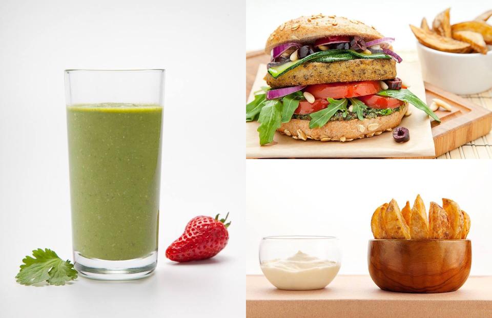 In der Wartezeit wurden grüne Smoothies und handgemachte Kartoffel Wedges von fleißigen Helfern gereicht. Aus regionalen, saisonalen und 100% biologischen Zutaten wurden kreative Burger kreiert. Schon die Namen der 5 veganen Burger zeugen von Ideenreichtum: