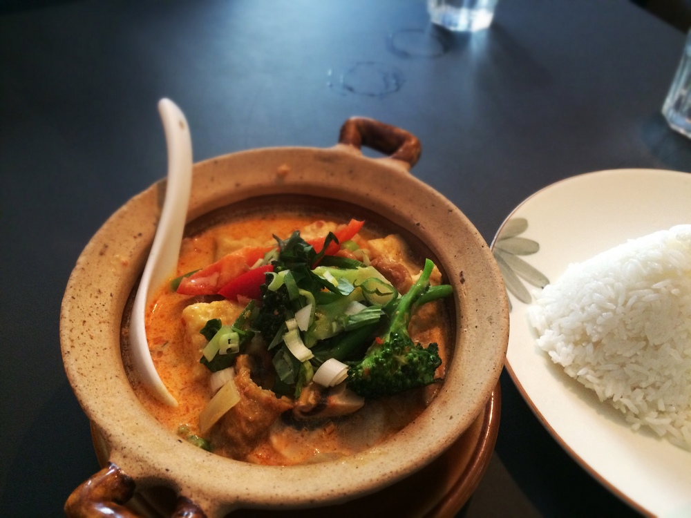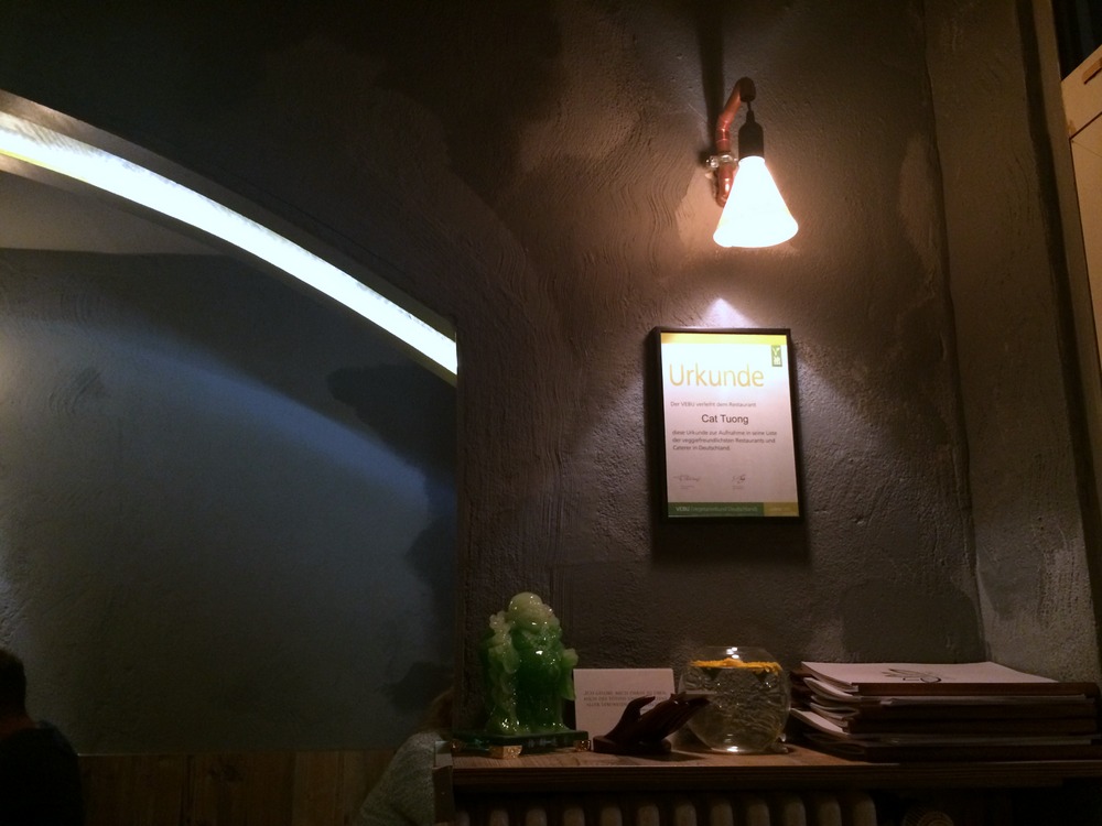 Als Veganer geht man natürlich grundsätzlich gerne in asiatische Restaurants, weil hier die Chance auf vegane Gerichte ziemlich groß ist. Allerdings gibt es hier so ein paar Stolperfallen. Recht häufig ist Fischsauce im Essen enthalten, und ohne bestellen geht nicht, weil das schon fertige Mischungen sind. Außerdem wird gerne auch mal die Kokosmilch mit H-Milch gestreckt, habe ich schon live beobachten können, und haben mir einige andere Menschen auch schon berichtet. Aber jetzt genug gemotzt, hier kommt die Alternative: Cat Toung auf der schönen Kastanienallee in Prenzlauer Berg.