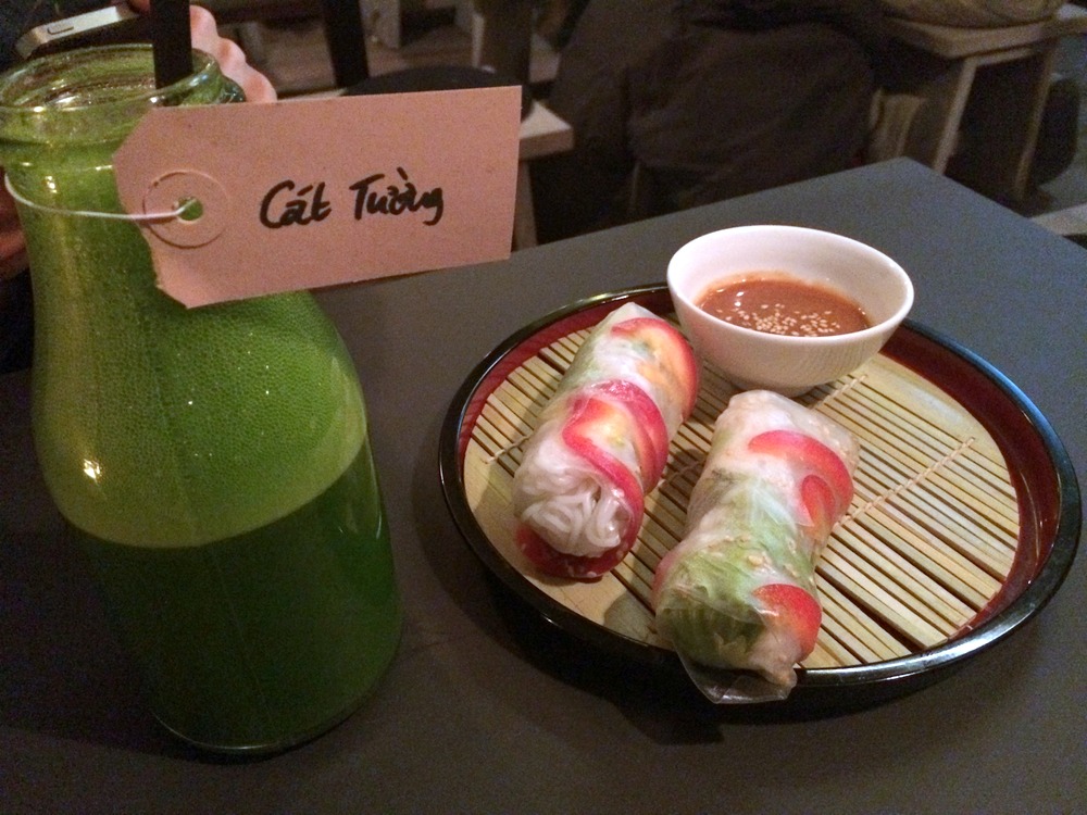 Ein weiteres – und natürlich auch das wichtigste – Highlight ist das Essen, das man im Cat Tuong nun zu 100% vegan bekommt. Hier bekommt man nämlich nicht den Standard-Einerlei, sondern absolut kreative und wirklich authentische vietnamesische Küche geboten. Dazu gehören ein paar Klassiker wie eine Pho, aber auch mir bislang völlig unbekannte Gerichte wie „Mochi Reis Burger“ mit Buchweizen, Quinoa, Kürbis, Walnuss, Koriander (und mehr) in einer Sojakruste. Und das ist nur ein Beispiel für ungewöhnlichere Kreationen, die man auf der insgesamt zum Glück überschaubaren Karte findet.