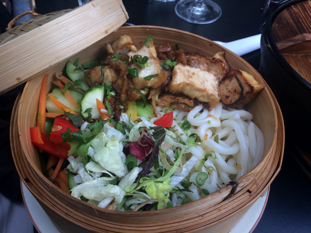 Das Vorspeisen-Angebot hat Klassiker wie Sommerrollen (die hier aber doppelt so lecker wie in den Standard-Restaurants sind, nicht zuletzt wegen des köstlichen Erdnuss-Dips) , aber auch Ungewöhnliches wie die knusprigen Reis-Pfannkuchen mit mariniertem Tofu, Pak Choi, Seitan, Kräutern und Sprossen, garniert mit Limette-Ingwer-Sauce. Eine riesige Portion übrigens und wahnsinnig lecker, wie alles im Cat Toung. Wer es warm mag, kann aus drei Pho wählen, vietnamesische Suppen, die es in einer traditionellen, aber auch in einer Variante nach altem Familienrezept gibt. Dann gibt es die Abteilung „Nudeln“ auf der Speisekarte, die z.B. einen leckeren Reisnudel-Salat, aber auch Udon Nudeln zu bieten hat – natürlich angereichert mit jede Menge leckerer Zutaten. Auch Reisfans kommen auf ihre Kosten, keine Angst, und auch für ein Dessert ist gesorgt. Insgesamt gibt es gut 20 Gerichte auf der Karte, was ich aber völlig ausreichend finde, denn die Auswahl ist groß genug, und hier zählt eben Qualität vor Quantität. Auch preislich ist hier alles top, besonders angesichtes der Zutaten.