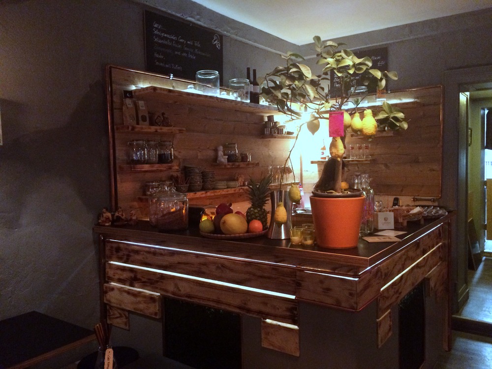 Auch die Getränkeauswahl gefällt mir gut. Selbstgemachte Limos, diverse Smoothies, richtig guter Wein (natürlich auch vegan) und auch beim Wasser macht man hier keine Abstriche: entweder Wasser von St. Leonhard oder gefiltertes (und energetisiertes) Wasser von Leogant. Auch hier gilt für mich: Alles richtig gemacht!