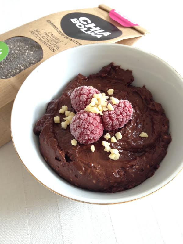 Avocado, Mandel-Milch oder Wasser, Kakao-Pulver, Zimt, Vanille, Sirup, eine Prise Meersalz und CHIABOLIKA Chia Samen in einer Schüssel vermischen und im Kühlschrank für mindestens 30 min lagern. Servieren mit Lieblingsfrucht.