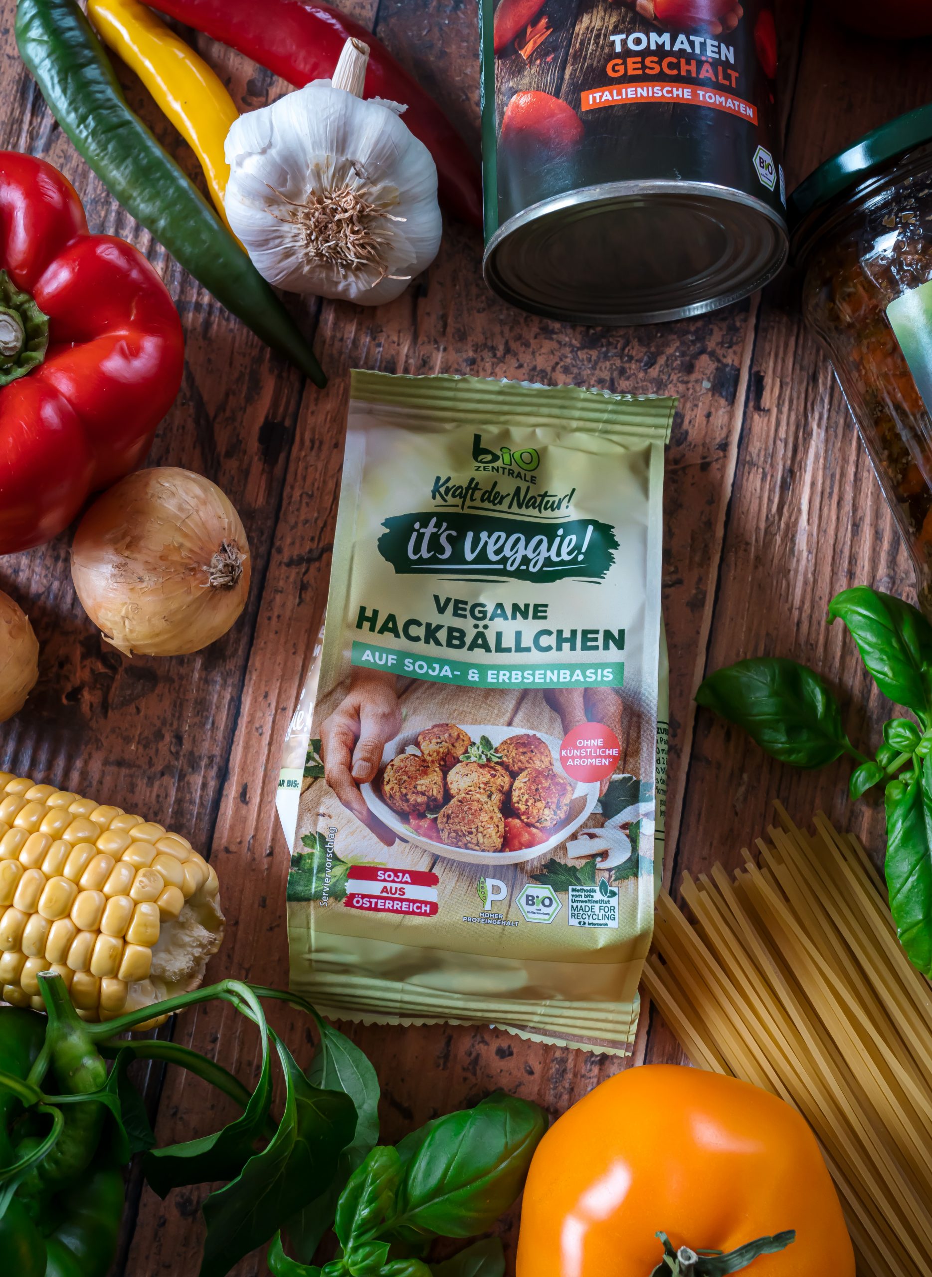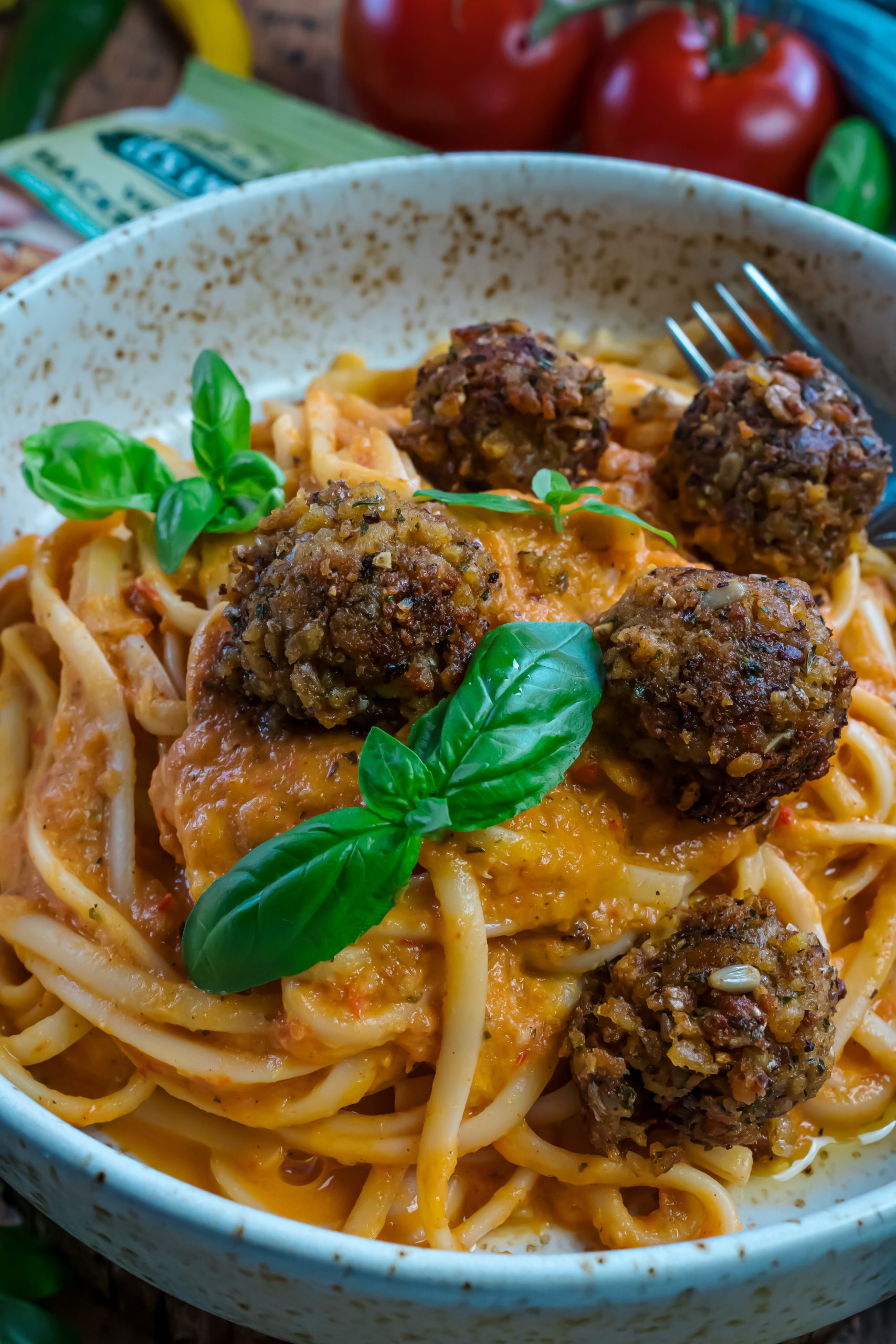 Die veganen Hackbällchen aus der neuen Linie it´s veggie! von der Bio-Zentrale eignen sich super gut für dieses Pastagericht. Sie sind auf Soja- und Erbsenbasis und sehr schnell und einfach zubereitet. Die veganen Hackbällchen schmecken deftig, würzig und verfeinern diese cremige Pasta. Dank des hohen Proteingehalts sind sie eine ideale Fleischalternative zu Spaghetti mit Hackbällchen, Aufläufen oder anderen Gerichten. Natürlich alles ohne künstliche Aromen.
