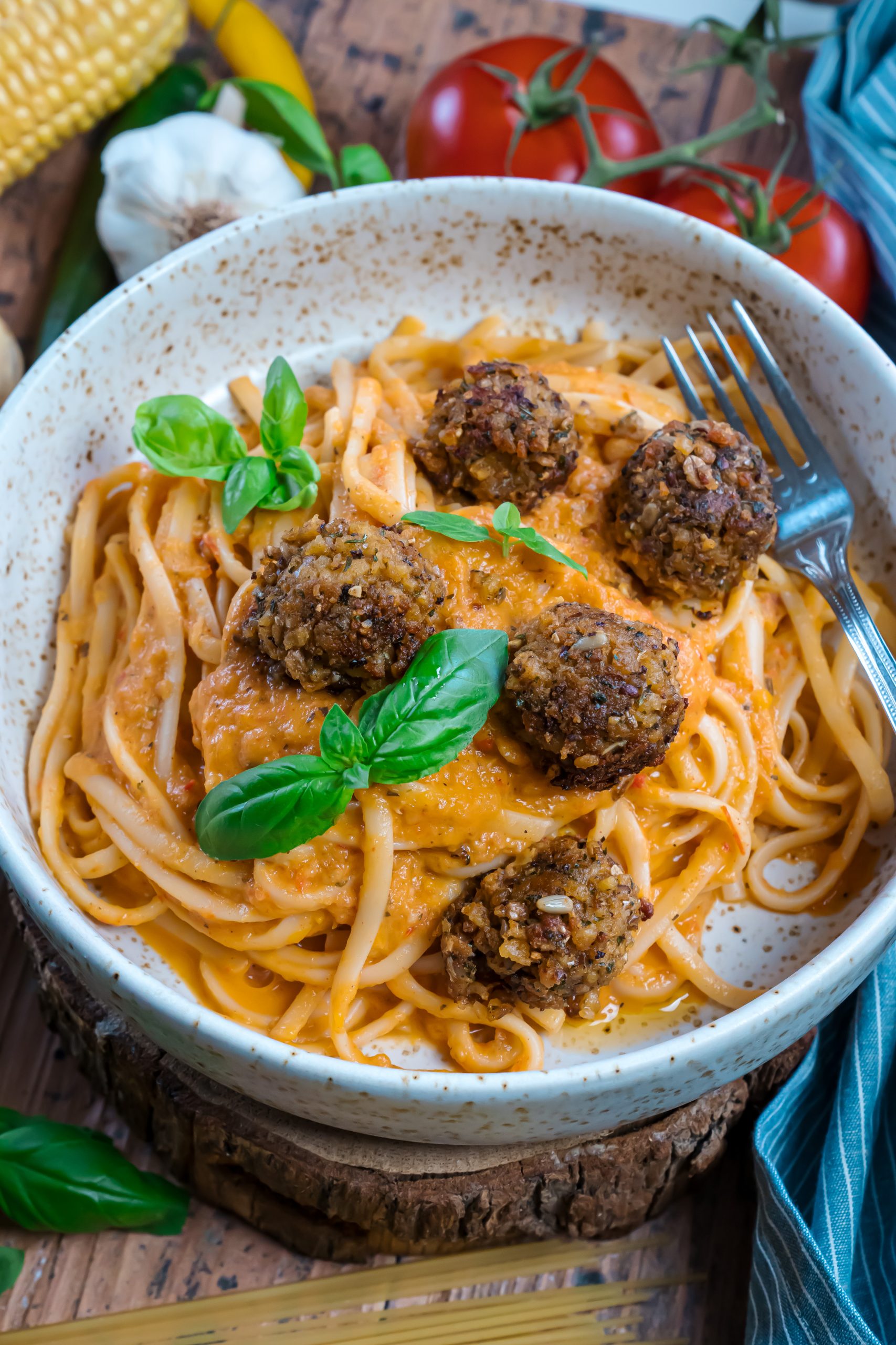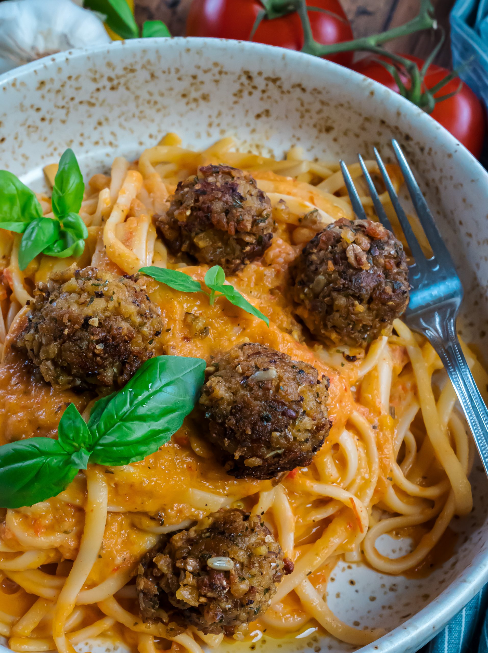 Dieses geniale, vegane Pasta Rezept ist nicht nur super lecker und cremig, sondern sehr einfach und schnell zubereitet! Und besonders gut abrunden kannst du dieses Gericht mit veganen Hackbällchen – probier es mal aus!
