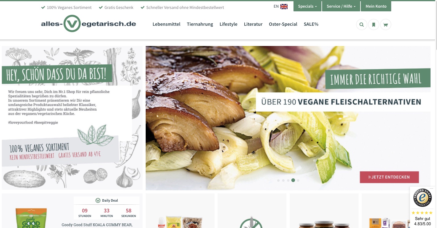 Unser Ziel ist es jeden Tag „die vegane Idee“ zu verbreiten und dazu möchten wir euch auch weiterhin inspirieren! Heutzutage vegan zu leben ist einfacher als je zuvor. Es gibt zahlreiche Onlineshops, Supermärkte und Discounter ergänzen ihr Sortiment und selbst Mischanbieter steigen um und bieten immer mehr vegane Produkte an. Auf der BioFach und auf den zahlreichen VeggieWorld Messen gibt es immer neue Produkte zu entdecken.