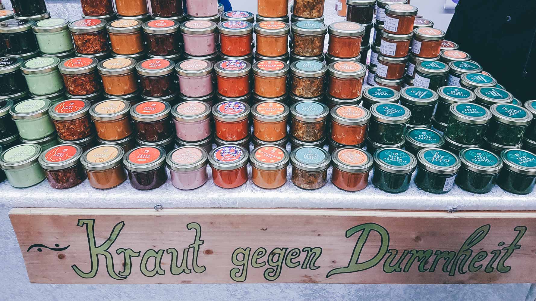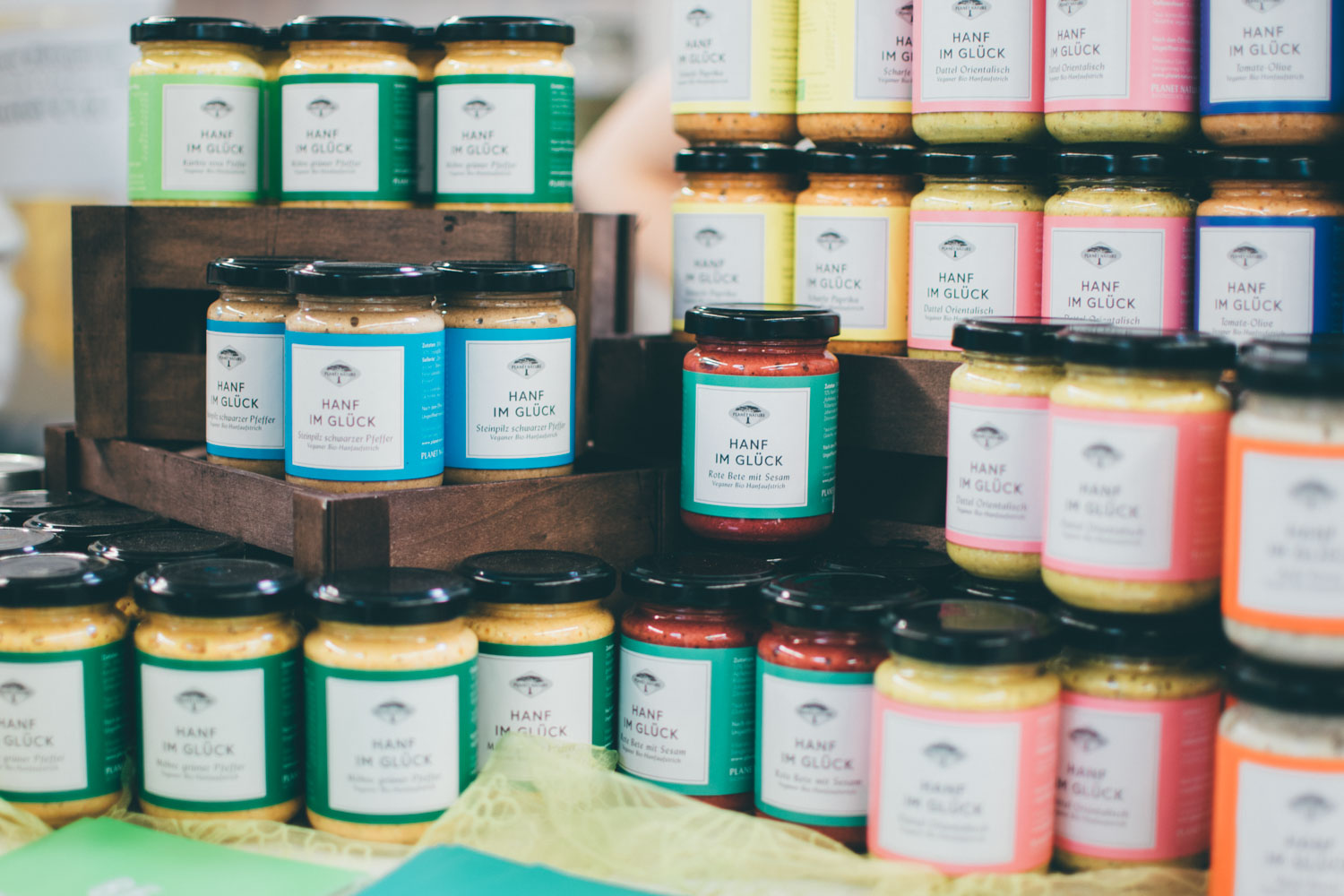 Vegane Honig-/Metalternativen gibt es bei Vegablum aus Meerbusch. Das liebevolles Design der Deckel springt einem sofort ins Auge. Ganz besonders haben es uns die Honigalternative, wie Ringelblumen-/ Gänseblümchen-Vonig angetan.
