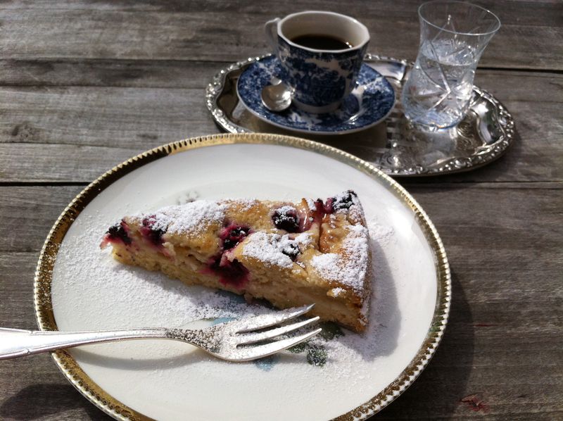 - Birnen-Brombeer-Kuchen und Espresso