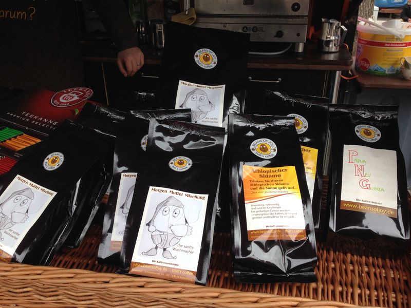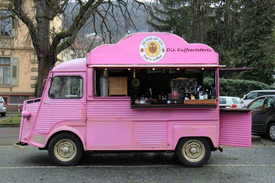 Wer zu dem Kuchen unbedingt einen Kaffe trinken möchte, der ist bei Beans of Joy gut aufgehoben. Bei dem süßen pinkfarbenen Wagen gibt es verschiedene Kaffeespezialitäten. Veganer können zwischen Soja- und Mandelmilch wählen.