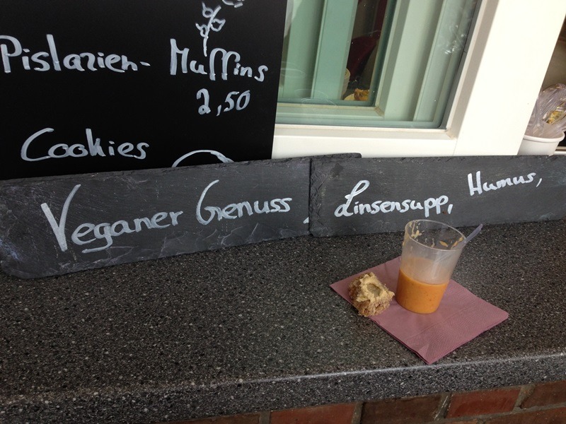 Bei der Klosterhof Brauerei hat man noch die Möglichkeit, leckeres Bio-Bier zu verkosten. Meine Empfehlung: der Hopfen-Fuchs :P Und bei Sabine Fritsch gabe es vegane Linsensuppe und leckeres, selbstgebackenes Brot und Hummus. Ich war total pappsatt, aber ich durfte kostenlos eine Miniportion probieren. Auch hier kann ich nur ein Lob aussprechen. Sie wird allerdings nicht jeden Samstag da sein, aber an jedem 1., 3. und 5. Samstag im Monat.