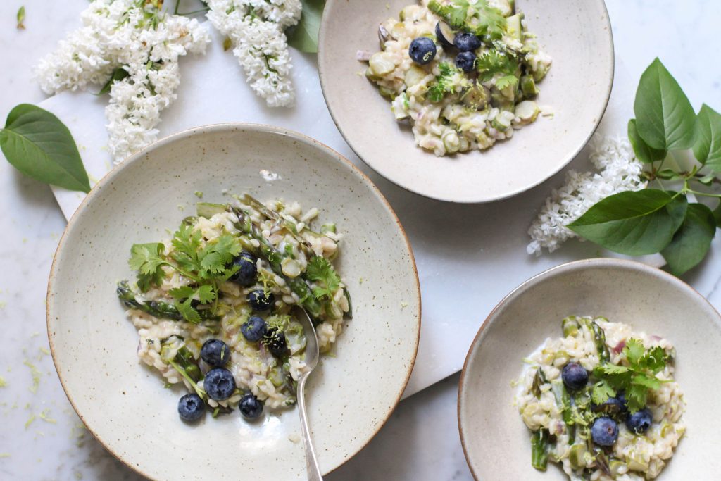 Probiere zum Beispiel Spargel in fluffig-weiche Kräuterpfannkuchengewickelt mit feiner veganer Hollandaise, cremige Spargel-Pasta Mac ’n Cheese, sahniges Spargelrisotto mit Heidelbeeren, aromatischen Ofenspargel mit Erdbeer-Salsa, Spargel-Pizza, Spargel-Galette oder eine flinke Spargelpfanne aus. Du wirst staunen, wie groß die Bandbreite an Möglichkeiten ist, Spargel zuzubereiten – immer anders, immer super lecker!