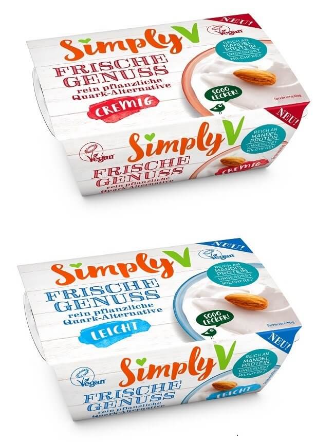 Das bekannte vegane Unternehmen Simply V ist bekannt für seine pflanzlichen Käsealternativen auf Mandelbasis. Neben Streichgenuss, Genießerscheiben, Reibegenuss und Pastagenuss soll es nun aber auch bald ein ganz neues Produkt geben: Eine vegane Quarkalternative. Der neue Simply V Frischegenuss soll sowohl von Geschmack, als auch von der Konsistenz mit herkömmlichen Quark mithalten sollen. Er besteht aus wertvollem Mandelprotein, ist ungesühnt und komplett milchfrei, palmölfrei und sojafrei. Die Quarkalternative wird in zwei Varianten auf den Markt gebracht: die cremige Variante mit 9% Fett und die leichte Variante mit 1,8% Fett.