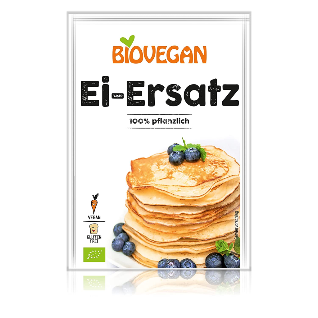 Neben den natürlichen Ei-Alternativen kannst du natürlich auch Fertigprodukte kaufen. Damit kannst du backen und kochen und sie sind praktisch in der Anwendung.