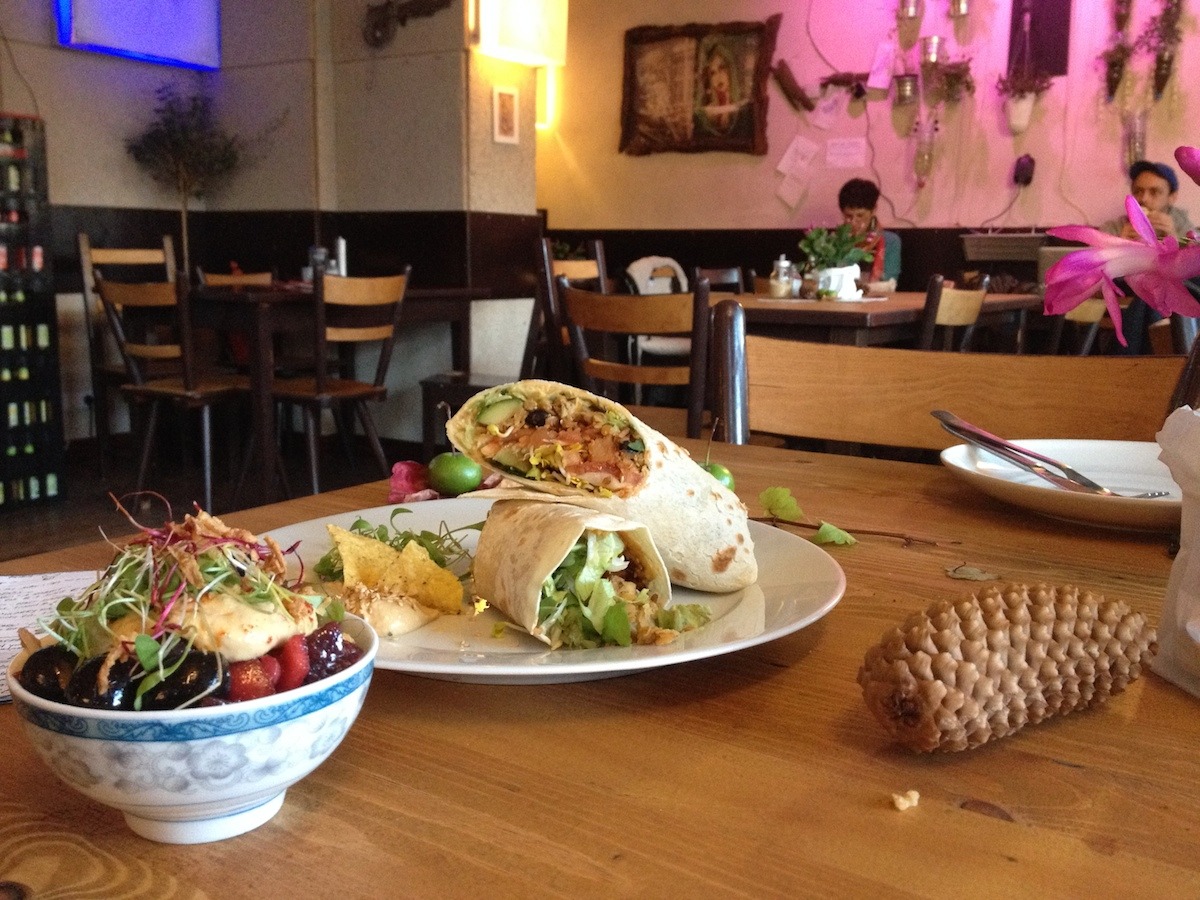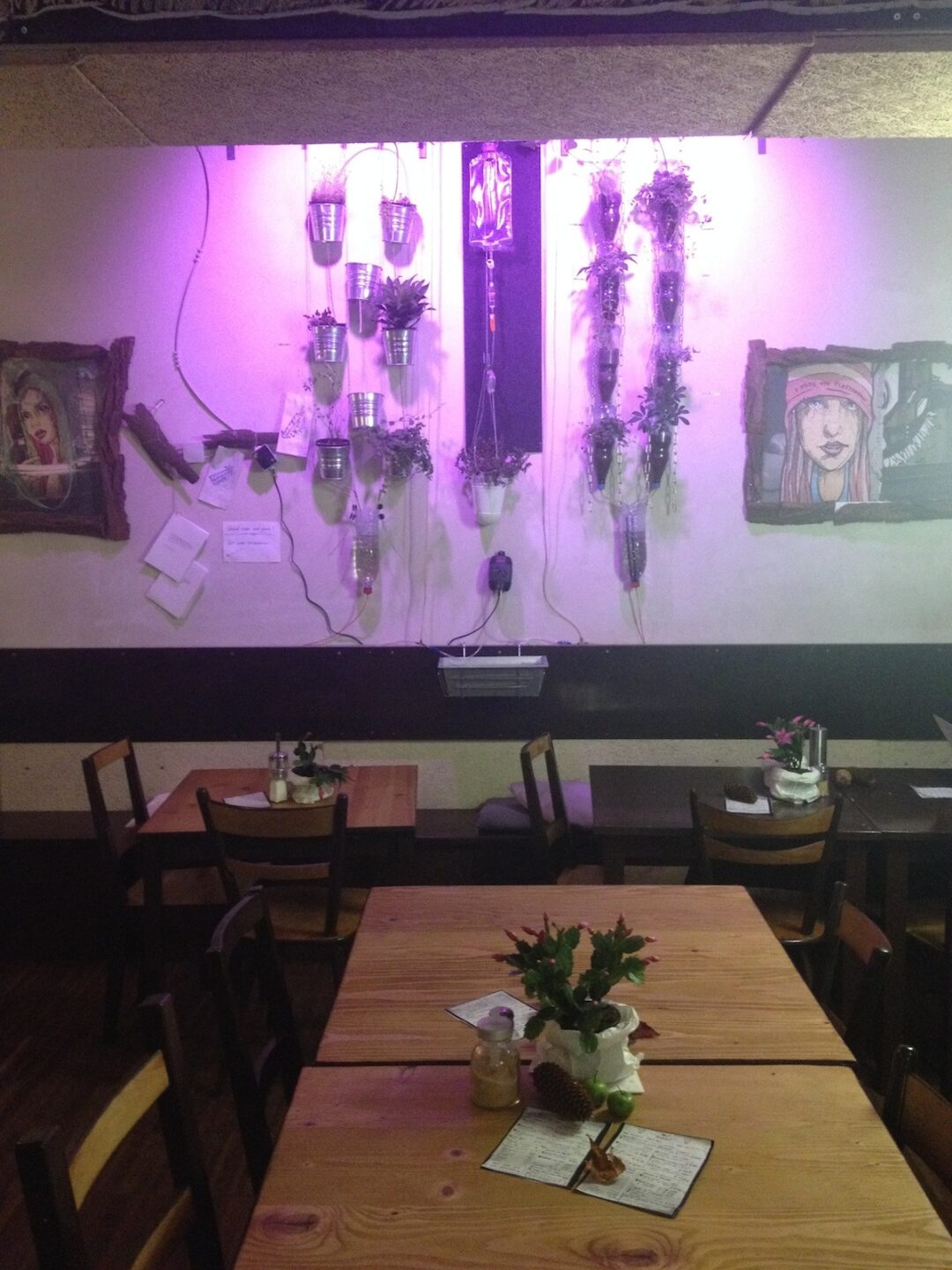 Bis auf Kuhmilch, die man auf Wunsch bekommen kann, ist alles zu 100% vegan hier.