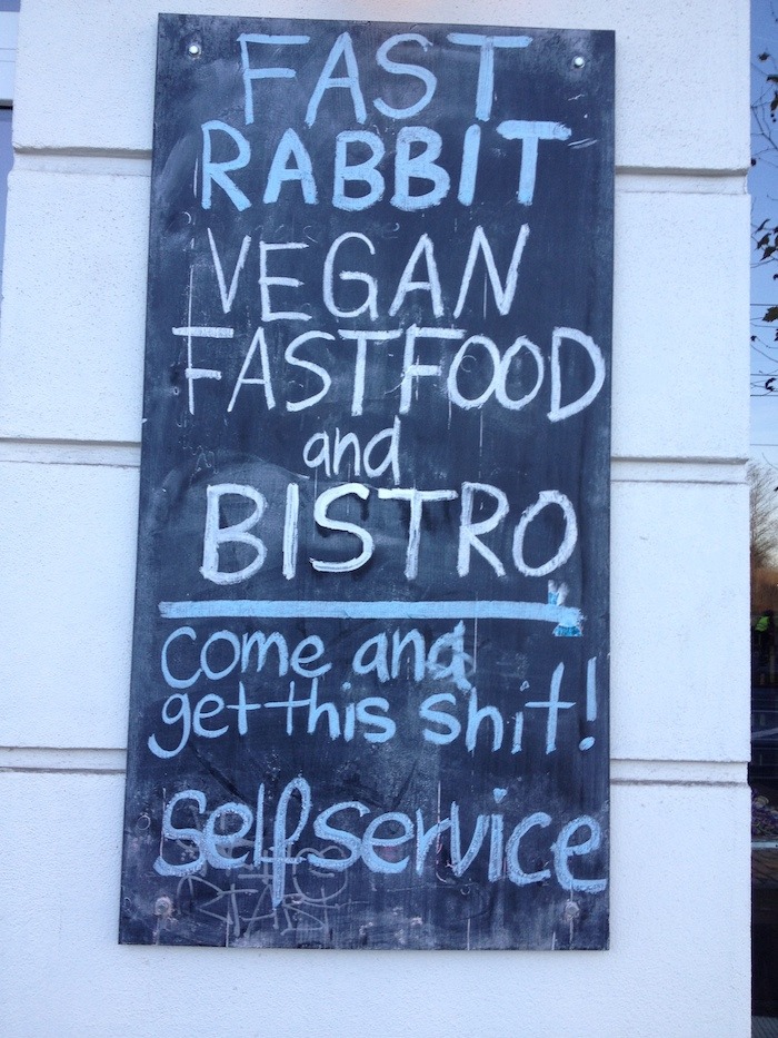 Ich weiß, in Berlin passiert jede Menge, ständig machen neue vegane Locations auf, ABER: Inzwischen fast alle in Neukölln, und da schaut man selbst innerhalb von Berlin dann mal neidisch rüber aus dem Prenzlauer Berg – wo es gar nicht mal so viele passende Locations gibt. Um so schöner, dass es nun das „Fast Rabbit“ gibt, direkt am Mauerpark an der Eberswalder Straße. Und noch besser: Das Fast Rabbit ist richtig toll! Aber der Reihe nach…