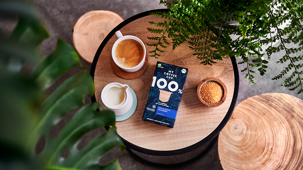 Wir alle lieben Tee und Kaffee. My Coffee Cup kombiniert konventionellen Kaffeegenuss mit höchster Qualität und Nachhaltigkeit. Daraus entstand die Idee zum Bio-Kaffee aus kontrolliert ökologischem Anbau in industriell kompostierbaren und Nespresso®*-kompatiblen Kapseln. Dies ermöglicht umweltfreundlichen Kaffeegenuss auf Knopfdruck. Alle Produkte sind natürlich vom Anbau bis ins Regal CO2-neutral zertifiziert. Mit jeder Tasse Kaffee oder Tee leistet ihr daher einen aktiven Beitrag zum Schutz der Natur und des Klimas. So holst du noch mehr Genuss aus deiner Kaffeemaschine heraus.