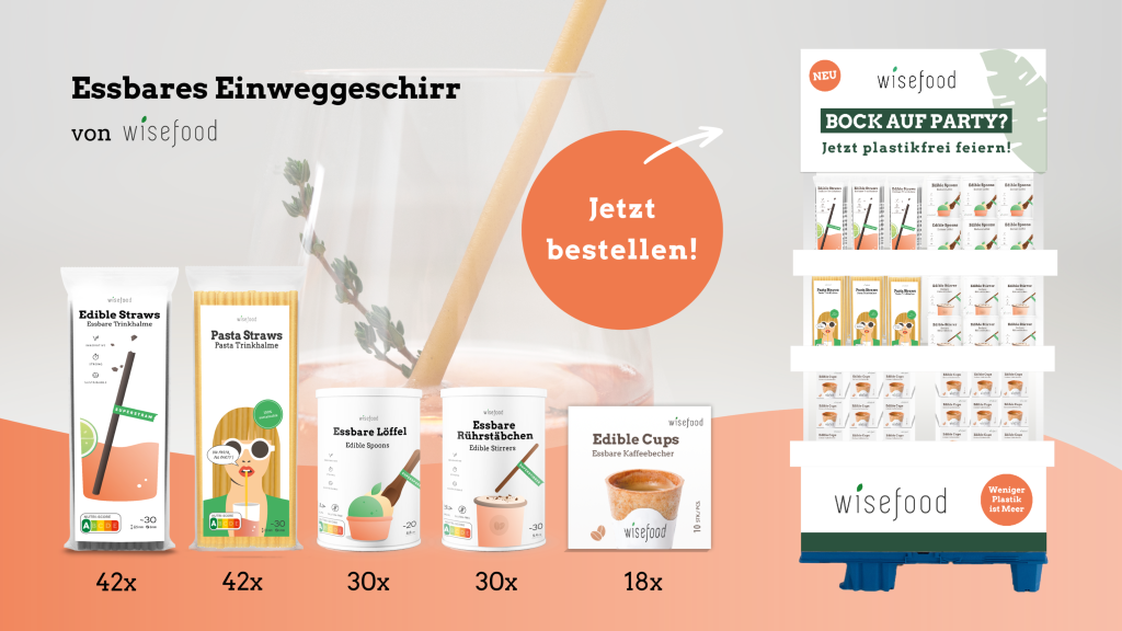 Wisefood stellt essbare Alternativen zu Einwegplastikprodukten her. Das klasische Papp-Wegwerf-Geschirr wird durch ihre innovativen essbaren Teller komplett ersetzt. Dabei geht Wisefood auf das weltweit wachsende Bedürfnis in Bezug auf Umweltbewusstsein und Nachhaltigkeit ein. Bei der Herstellung werden ausschließlich nachwachsende Rohstoffe wie z.B. Apfelfasern, verwendet. Mit den essbaren Produkten haben sie ein großartiges Alleinstellungsmerkmal und bieten eine spannende und nachhaltige Alternative zu Plastik.