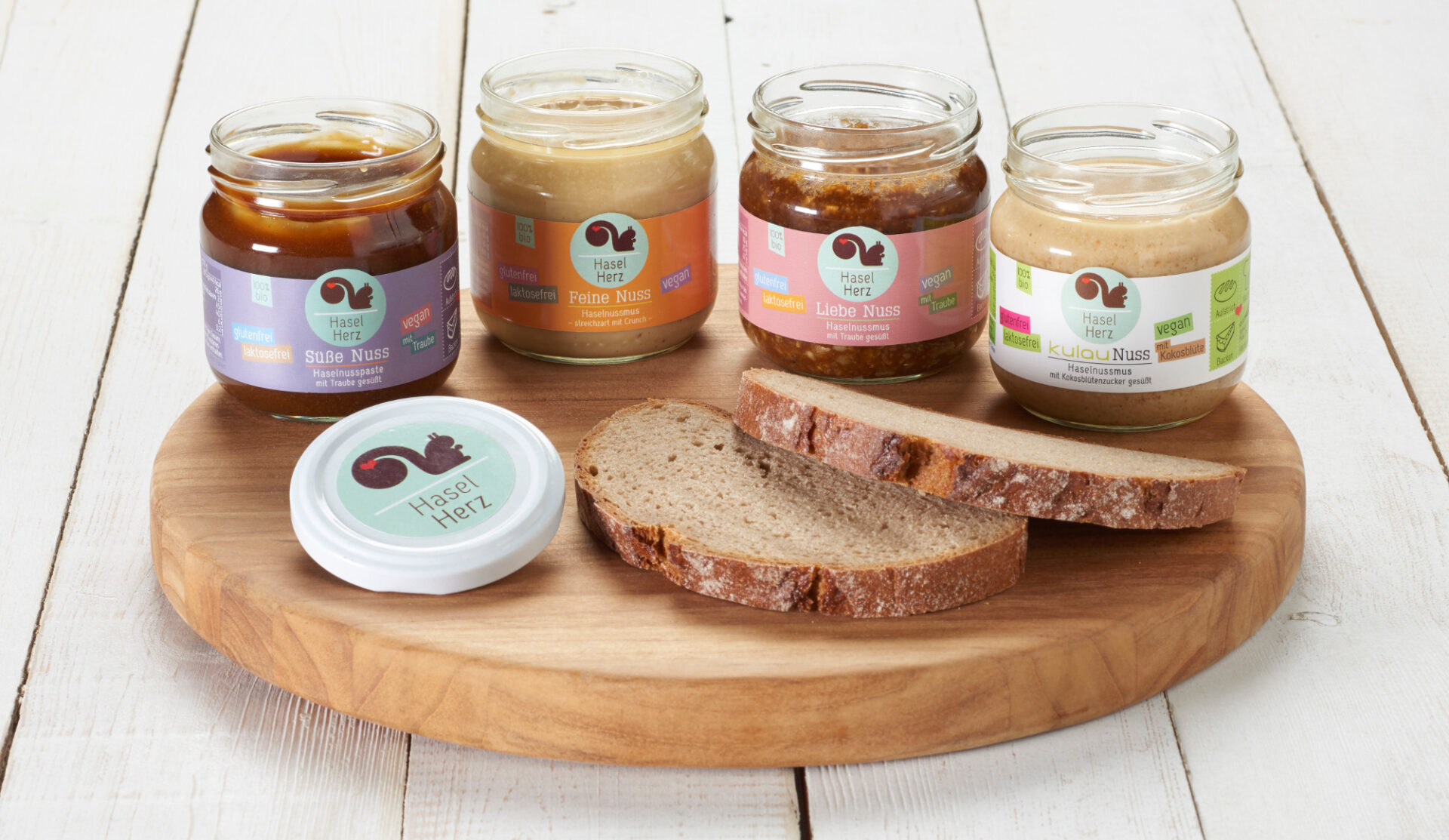 Wer auf der Suche nach der perfekten veganen Nutella-Alternative ist, wird bei HaselHerz mit Sicherheit fündig. Süße Nuss kommt dem Original extrem nah und schmeckt phantastisch auf einer frischen Stulle. Doch HaselHerz ist vielfältig einsetzbar und ein toller Küchenhelfer für Genießer. Liebe Nuss und Feine Nuss sind kernige Muse ausschließlich aus Biohaselnüssen, die beispielsweise zum Verfeinern von Desserts, Müslis und Salaten bestens geeignet sind.