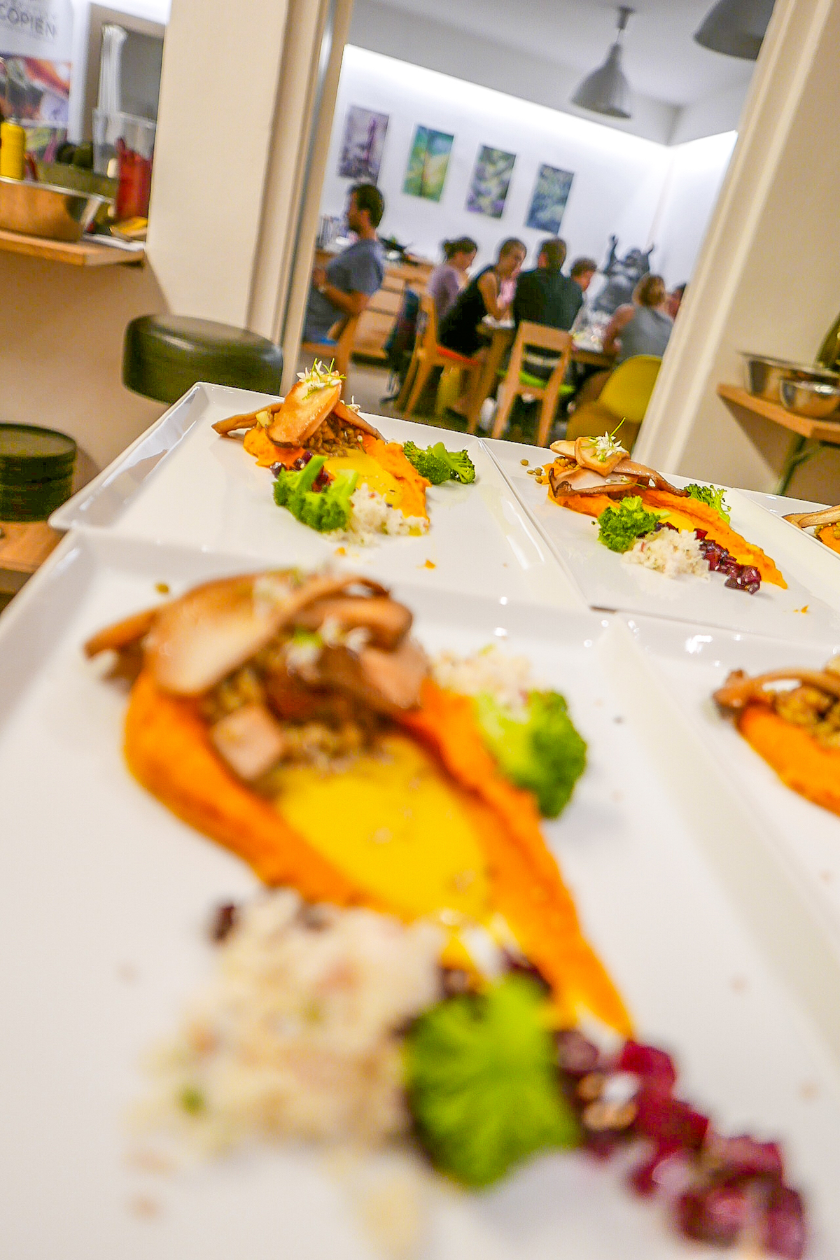 Die Basis meiner Arbeit und sozusagen das Hauptquartier ist meine Show- und Testküche im Herzen von München. Hier gebe ich jeden Monat verschiedene Seminare und Kochkurse. Vom 1 Tages Seminar inkl. Kochkurs zum Reinschnuppern über den intuitiven Kochkurs bei dem es um Rezeptentwicklung und Körpergespür geht bis hin zu mehrtägigen Seminaren. Beim 2 Tages Intensivseminar inkl. Kochkurs bekommt man als „vegan Neuling“ einen schönen Über-/ und Einblick und als Fortgeschrittene/r trotzdem einiges an neuen Input. Das 4 Tages vegan Chef Seminar ist das intensivste und ausführlichste Seminar bei dem es dann richtig zur Sache geht und das voll gepackt ist mit Wissen, Techniken und leckerem Essen. (Anmerkung: leckeres Essen gibt es in jedem Kurs (lacht)).