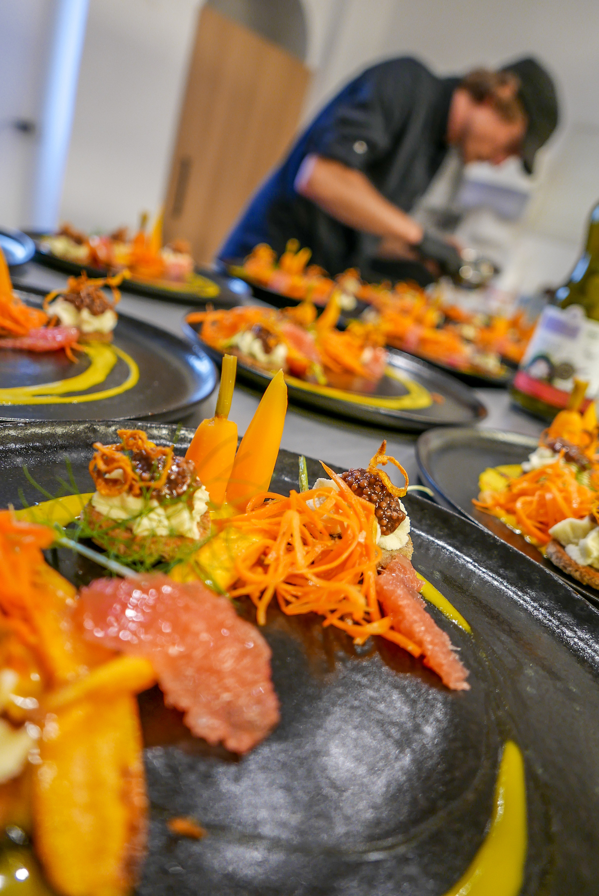 5 Gehminuten neben meiner Küche habe ich einen 80qm großen Garten, in dem ich nach den Regeln der Permakultur mein Gemüse, Kräuter etc. für die Kurse und Events anbaue. Hier gebe ich auch meinen Gartenkochkurs in dem wir zuerst im Garten sind, dann wird geerntet und alles in der Küche verkocht. Das liebe ich am meisten, mich von der Natur und der Saison inspirieren zu lassen. Die Pflanzen verarbeiten die zur Verfügung stehen. Wenn ein Überschuss entsteht, dann mache ich das Gemüse essigsauer ein, oder fermentiere es für die Zeiten wenn bedingt durch die Jahreszeit nichts wächst. Das Gemüse verarbeite ich auch für meine veganen fine-dining DinnerEvents. Hier bewirte ich immer 16 Personen mit einem sehr hochwertigen 6-Gang-Menü so das alle einen super entspannten und kulinarisch hochwertigen Abend haben.