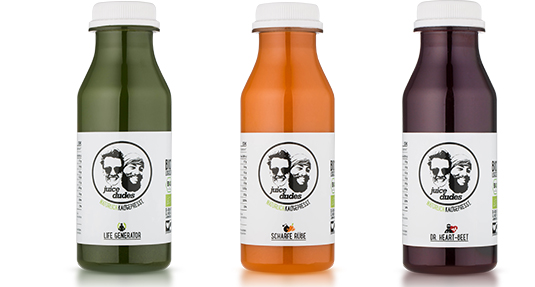 Saft-Fans, aufgepasst, heute habe ich einen guten Tipp für euch. Die Juice Dudes aus Berlin bieten kaltgepresste Obst- und Gemüsesäfte in Bio-Qualität. Natürlich vegan. Und die haben es im wahrsten Sinne des Wortes in sich. Außerdem kommen sie mit schönen Namen daher, z.B. der „Life Generator“, in dem Apfel, Gurke, Spinat, Sellerie und Zitrone steckt. Oder „Dr. Heart-Beet“, der sich aus Apfel, Rote Bete, Karotte, Blutorange, Rotkohl und Ingwer zusammensetzt. Oder aber die „Scharfe Rübe“ mit Karotte, Apfel, Süßkartoffel, Kürbis und Ingwer. Klingt abgefahren, oder? Das ist mal was anderes als nur Apfel-Möhre!
