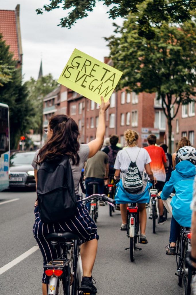 Das Ereignis, welches mich zu diesem Thema führte war meine erste Teilnahme bei der Fridays for Future Demonstration in Münster. Ich war fasziniert von dieser Energie und Motivation der jungen Menschen. Während der Demo kam mir der Gedanke: Der Braunkohleausstieg allein wird nicht reichen, um die Klimaziele einzuhalten. Das einfachste und effektivste ist eine pflanzliche Ernährung. Also würden doch alle Umweltschützer*innen und Klimaaktivisten*innen vegan leben. Oder? Dem war nicht so. Ich begann ein paar Schüler gezielt während der Demo anzusprechen: „Hey, lebst du vegan?“, „Entschuldigung, wusstest du schon, dass…“ Oft war die Antwort: „Nein…, wieso?“ oder „Hä, was bringt das schon…“. In mir brach eine kleine Welt zusammen. Warum werden wir nicht aufgeklärt? Jetzt wusste ich genau, was mein Thema sein wird. Hier fehlte die Aufklärung. Das musste ich ändern.