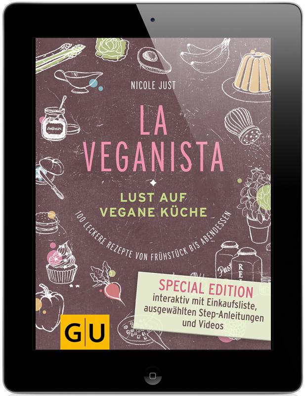 Das vegane Kochbuch „La Veganista“ von Nicole Just ist super eingeschlagen, und das ganz sicher zu Recht. Diverse überregionale Zeitungen haben das Buch zum Anlass genommen, Nicole zum Thema Veganismus zu interviewen. Das freut uns natürlich total, und genauso freuen wir uns, dass der Gräfe und Unzer Verlag für alle iPad-Nutzer nun eine Version herausgebracht in Form eines „Enhanced E-Books“, das man im Apple E-Book-Store für 13,99 Euro kaufen kann.
