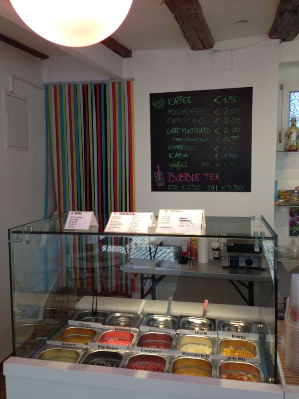 Zum einen werden Bubble Teas aus täglich frisch gekochtem Grün- und Schwarztee angeboten mit diversen Geschmacksrichtungen und Toppings. Die Tees, Sirups und Toppings sind alle vegan (auch die Geschmacksrichtung Joghurt). Auch diverse Slushs kann man bestellen.