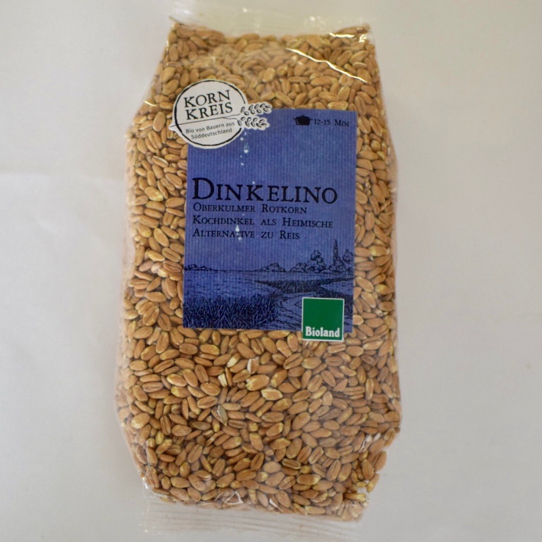 Dinkelkorn wird aus der alten Dinkelsorte „Oberkulmer Rotkorn“ hergestellt. Der Dinkel wird angeschliffen, gedämpft, gewalzt und getrocknet. Er bietet sich als eine heimische und aromatische Reisalternative.