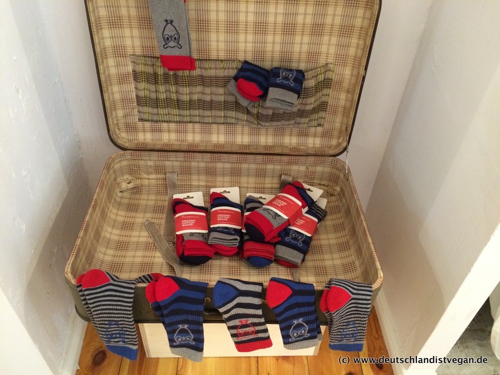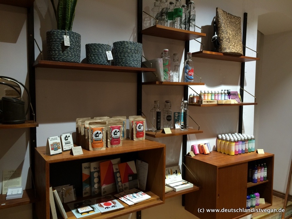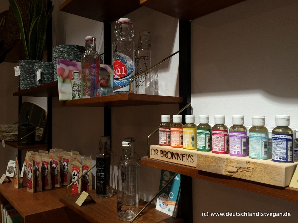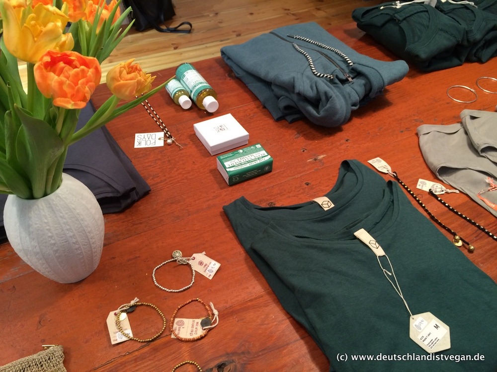 Natürlich sind die angebotenen Klamotten nicht weniger wichtig, und auch hier beweist Christina ein gutes Näschen. Das Angebot ist groß und vielfältig mit Labels wie Armed Angels, Recolution, Monkey Genes, Minga Berlin, Wunderwerk, Hoodlamb und viele weitere zeigen, wie schön und tragbar ökofairvegane Mode ist. Außerdem findet ihr tolle Accessoires (z.B. von Matt & Nat) und schöne Sachen wie die Lovebottles oder die tollen Seifen von Dr. Bronner. Und vieles vieles mehr!