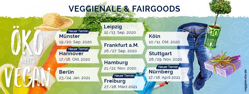 Unter dem Motto: „Öko meets vegan“ startet die Veggienale & FairGoods im September. Wir stellen dir heute die Standorte vor.