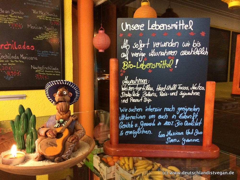 Was mir aber besonders gut gefällt, ist das das Mexican Hat noch viel weiter geht, was das Thema Nachhaltigkeit angeht. Inzwischen ist nämlich so gut wie alles auch noch „Bio“! Das ist tatsächlich etwas, was ich in der veganen Szene noch sehr vermisse, fast alle Läden benutzen zumindest größtenteils konventionelle Lebensmittel. Hut ab also, dass die Leute vom Mexican Hat nicht bei „vegan alleine“ Halt machen.