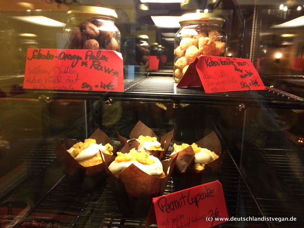 Die vielleicht noch interessanteren News gegenüber dem letzten Besuch: Alles ist nun zu 100% vegan. Dazu muss man sagen, dass der Laden anfänglich auch noch Fleisch auf der Karte hatten. Da aber die supersympathischen Betreiber irgendwann vom Vegan-Virus angesteckt wurden, verloren sie zunehmend die Lust daran, Fleisch oder andere tierische Produkte zu verarbeiten. So stand irgendwann die Entscheidung, konsequent auf vegan zu setzen.