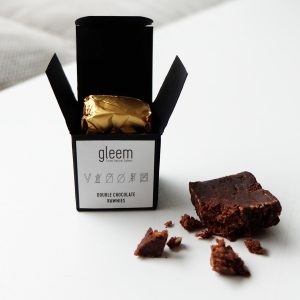 Die Rawnies von Gleem sind die gesunde Brownie-Alternative in Rohkostqualität. Die natürliche Süße entsteht allein durch frische Datteln. Definitiv ein veganes Luxusprodukt, welches mit 22 Karat Blattgold veredelt wird.