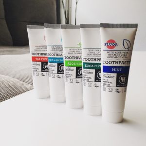 Eine tatsächliche Neuheit für uns war die Zahnpasta von Urtekam einem dänischen Kosmetik Unternehmen. Geschmacksrichtungen wie Minze & Grüner Tee oder Teebaumöl kannten wir jedenfalls bisher noch nicht. Die Zahncremes enthalten zu einem großen Teil biologische Zutaten und kommen bis auf eine Sorte alle ohne Fluor aus.