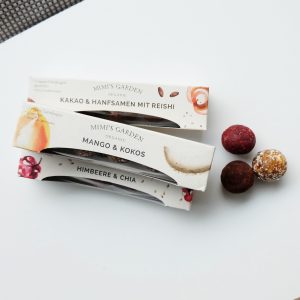 Die Dattelkugeln von Mimi’s Garden kommen in 3 Geschmacksrichtungen. Alle Zutaten sind 100% natürlich und bio. Die leckere süße entsteht durch Datteln und sogar die Verpackung ist vollkommen nachhaltig.