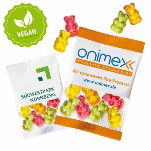 Nach einigen Kundenanfragen hat nun auch die Firma VOGEL’S Süsse-Werbeideen seine beliebten Gummibärchen in einer veganen Variante auf den Markt gebracht. Die Fruchtgummies enthalten hochwertige Fruchtsäfte und kaum Zucker. Es gibt sie in den leckeren Geschmäckern Apfel, Erdbeere, Orange und Zitrone. Auch die Verpackung überzeugt: Diese ist aus kompostierbarer Folie und ist somit auch umweltfreundlich. Die kompostierbaren 10g-Werbetüten können noch bis zum 30. September 2020 zum Aktionspreis erworben werden und mit einem gewünschten Logo oder Spruch verziert werden. Dies ist natürlich vor allem für das Marketing von Unternehmen interessant!