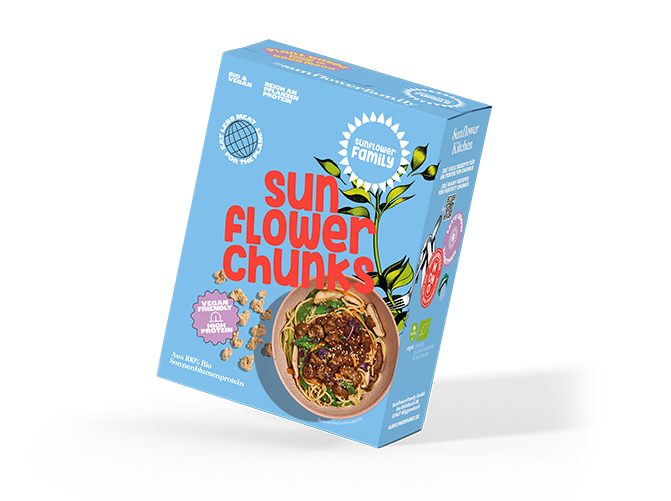 Die Inhaltsliste der sunflowerCHUNKS besteht aus nur einer Zutat: 100% Sonnenblumenprotein.
