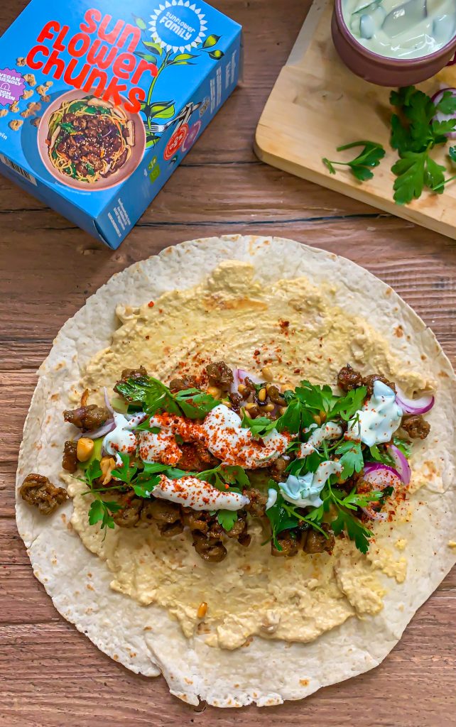 Heute gibt es ein leckeres und authentisches No Chicken Teriyaki Rezept. Die sunflowerCHUNKS erinnern stark an Hähnchen und schmecken im Wrap einfach köstlich. Teriyaki bedeutet auf Japanisch teri, „Glanz“ und yaku „grillen, schmoren“ und ist eine Zubereitungsart in der japanischen Küche. Zum No Chicken Teriyaki passt auch Basmati-Reis oder eine Gemüse-Bowl sehr gut. Alternativ kannst du die CHUNKS auch mit knackigem Pfannen- oder Wok-Gemüse servieren.