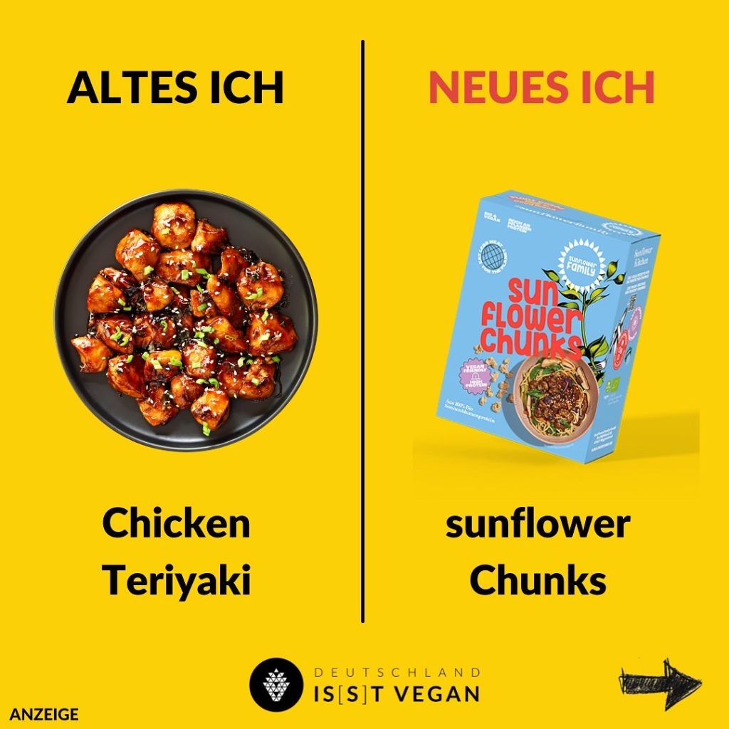 Die sunflowerCHUNKS sind aus Sonnenblumenprotein hergestellt und können als proteinreiche Fleischalternative im Curry, Gulasch und in anderen Gerichten verwendet werden. Probiert die CHUNKS unbedingt mal aus, mit dem Code „deutschlandistvegan“ gibt es sogar 15 % Rabatt. Die sunflowerCHUNKS gibt es jetzt auch ganz neu in der Familienpackung. Übrigens sind die Speise-Öle vorrätig und aktuell im Set im Angebot.